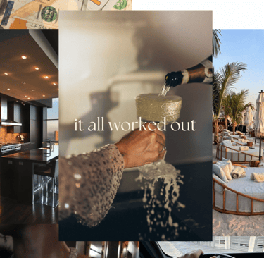 For the woman who’s done playing small. This vision board embodies luxury, confidence, and divine alignment — reminding you that wealth, peace, and success is already yours. Every image represents the lifestyle you deserve: soft mornings in your dream home, champagne celebrations, effortless abundance, and the quiet knowing that it all worked out.